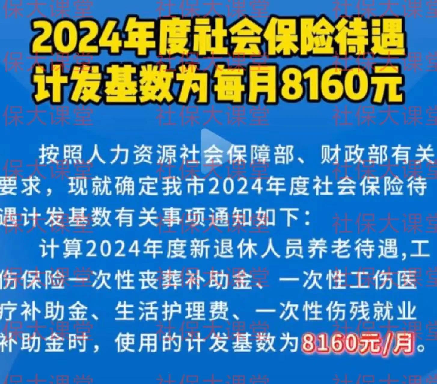 根据网传数据,重庆2024年的养老金计发基数为8160元。