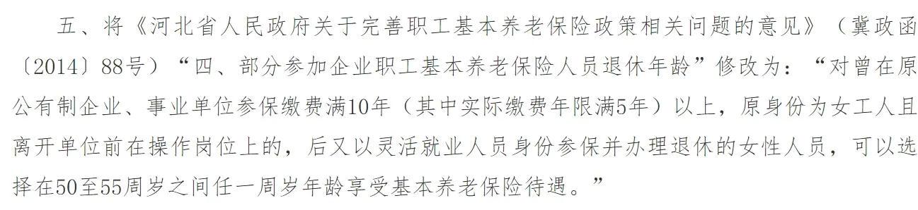 因此,部分符合条件的河北女性灵活就业人员,原来的法定退休年龄可以认定为50岁。