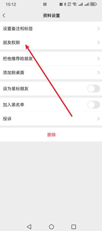 第三步:然后就会看到有一个【朋友权限】的选项设置,点击它;