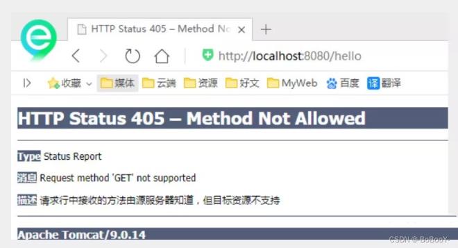 我们使用浏览器地址栏进行访问默认是Get请求,会报错405: