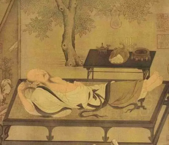 上图_南宋无名氏《槐荫消夏图》古代人夏天睡在床上纳凉的场景