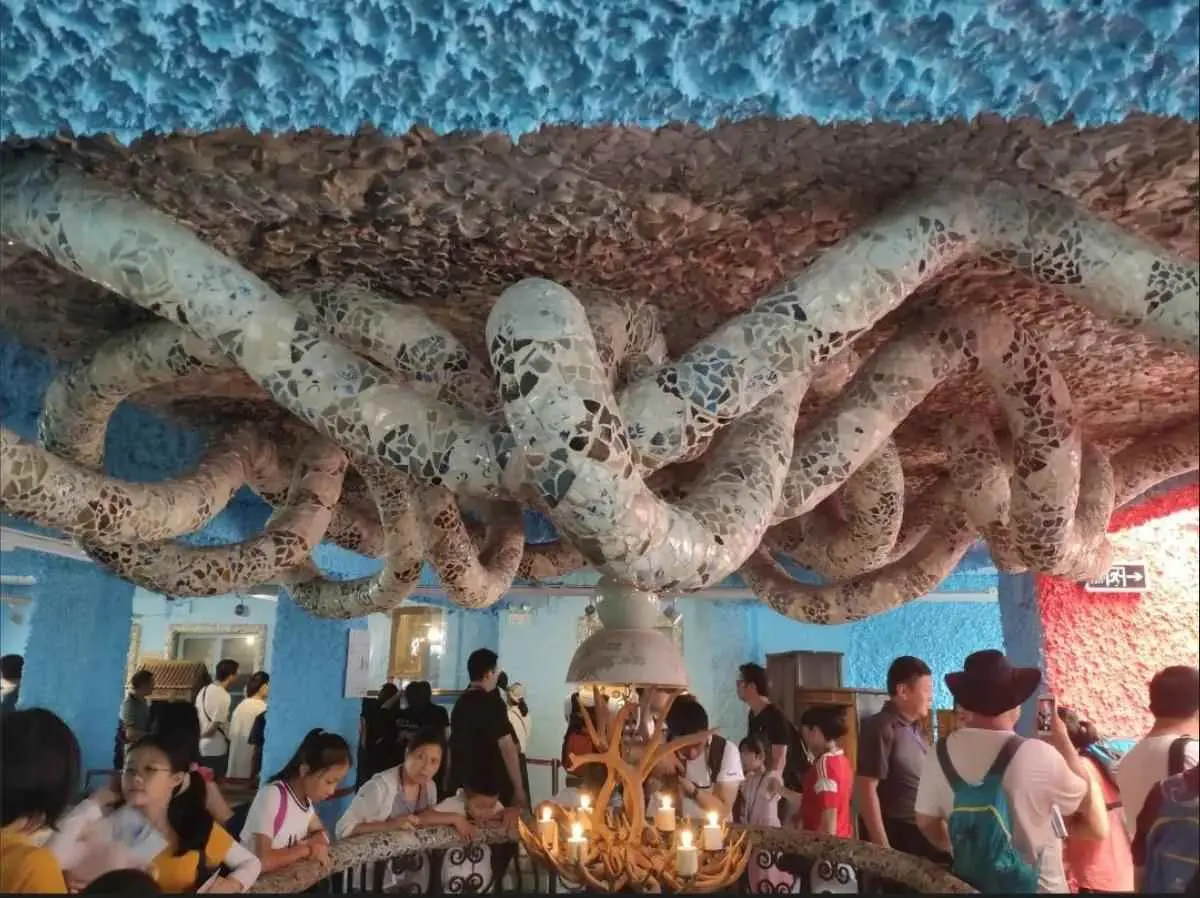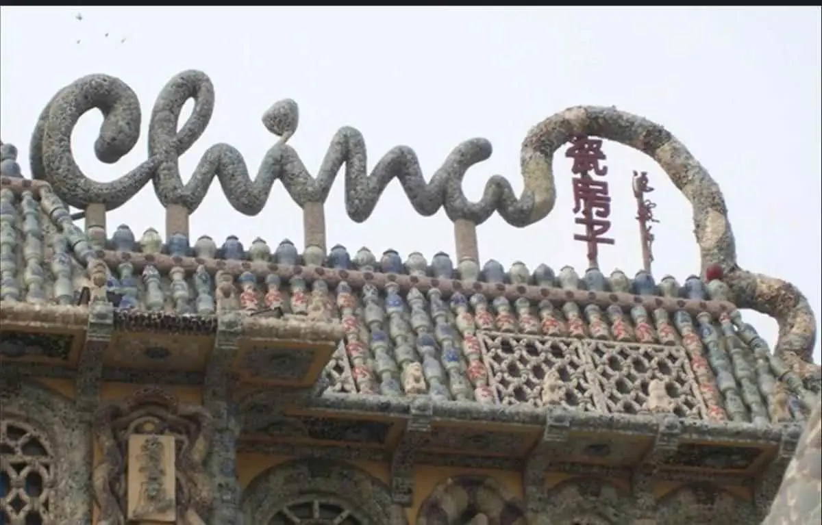 瓷房子右面盘旋着一条有china图案的长768米的瓷龙,但却只见龙头不见龙尾,寓意“神龙见首不见尾”