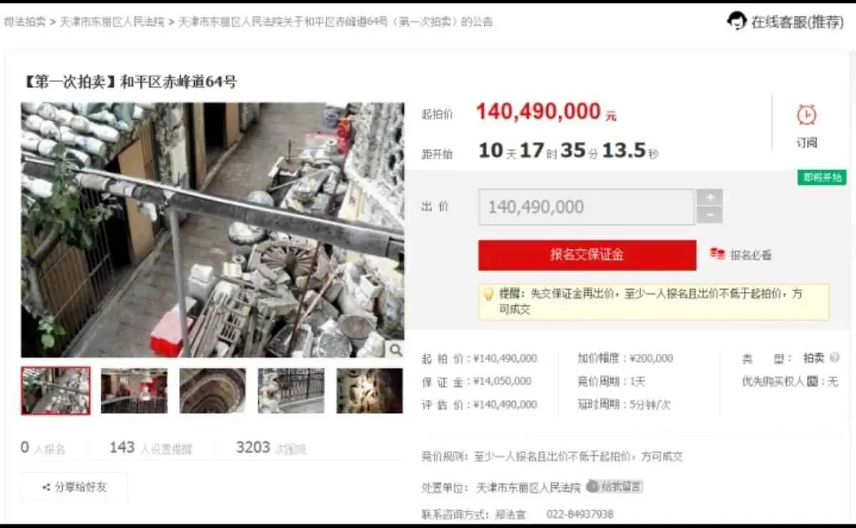 后来东丽法院给出了解释,相差97.4亿的原因是因为法院委托公司进行的评估只针对房屋本身的价值。并不包含室内外的一切文物瓷器及装饰等。因为文物价值是不能量化价值的,而且法院也没有权利对文物进行拍卖