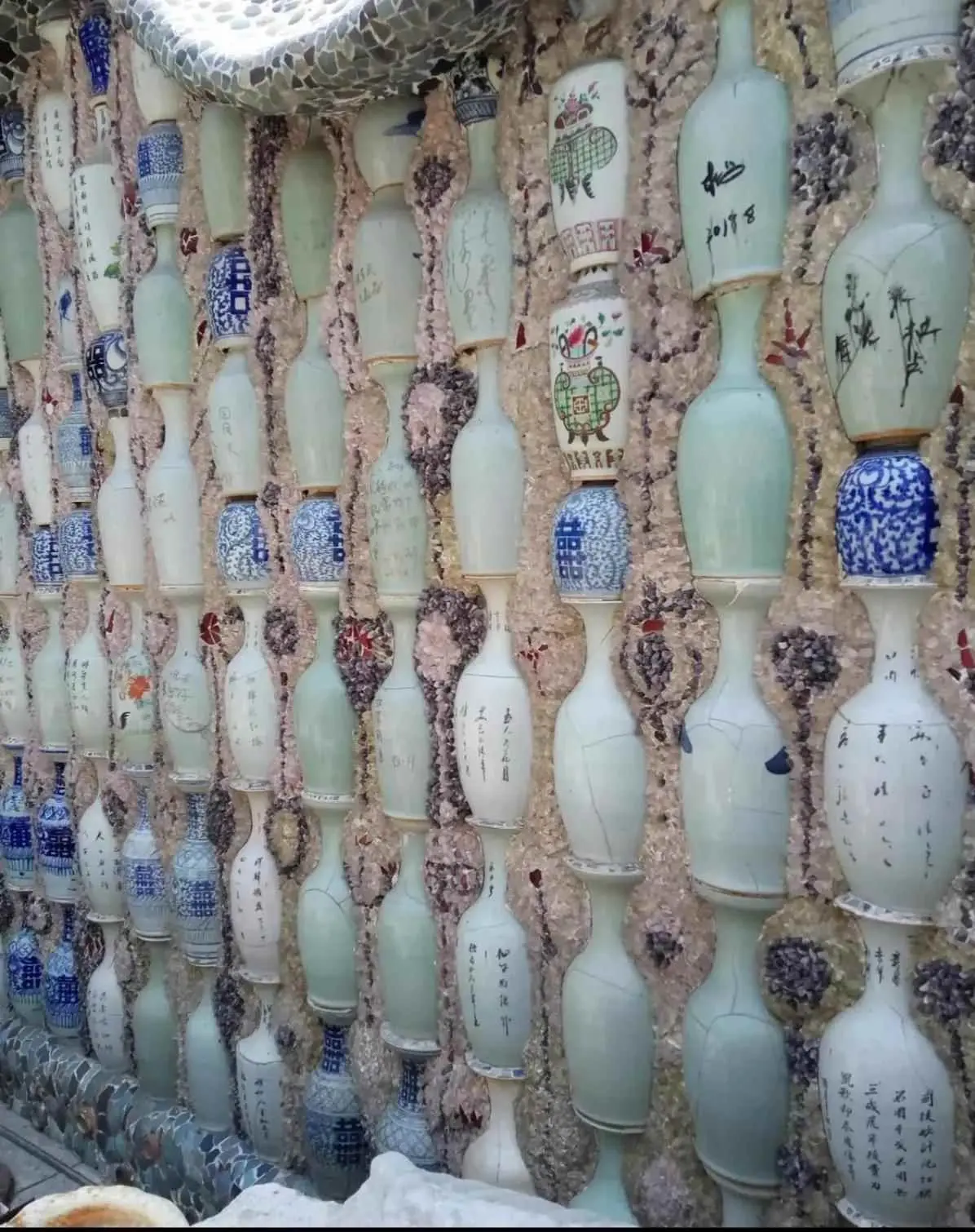 瓷房子院墙上镶了各种无头佛像,因此也被称为“平安墙”