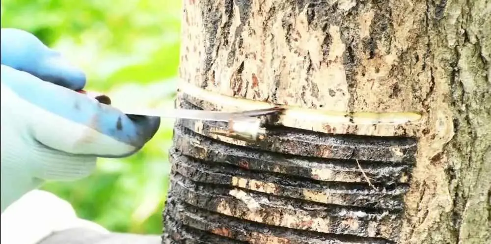 每年的四月初到八月底是漆农们上山割漆的时节,漆农们早出晚归,找到合适采集的漆树,在距离地面半米处割出一道长约15厘米,深达2厘米,宽1到2厘米的口子,然后转到这个树的另一侧与第一个口子距离约40厘米处割开第二道口子,这样交错开口是为了不阻碍漆树自身的营养输送,保存漆树的生命。