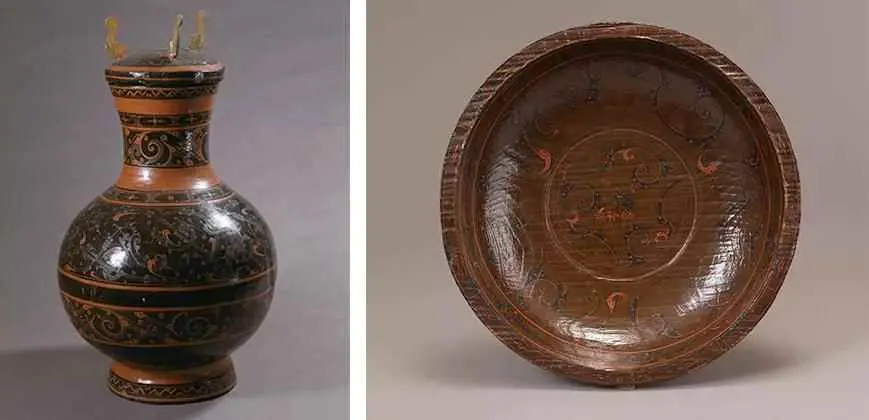 楚国漆器堪称战国漆器最杰出的代表,在影视剧《芈月传》中,可以看到楚宫里制作精良、设计精致、色彩精美的漆器,主要颜色就是红色和黑色。