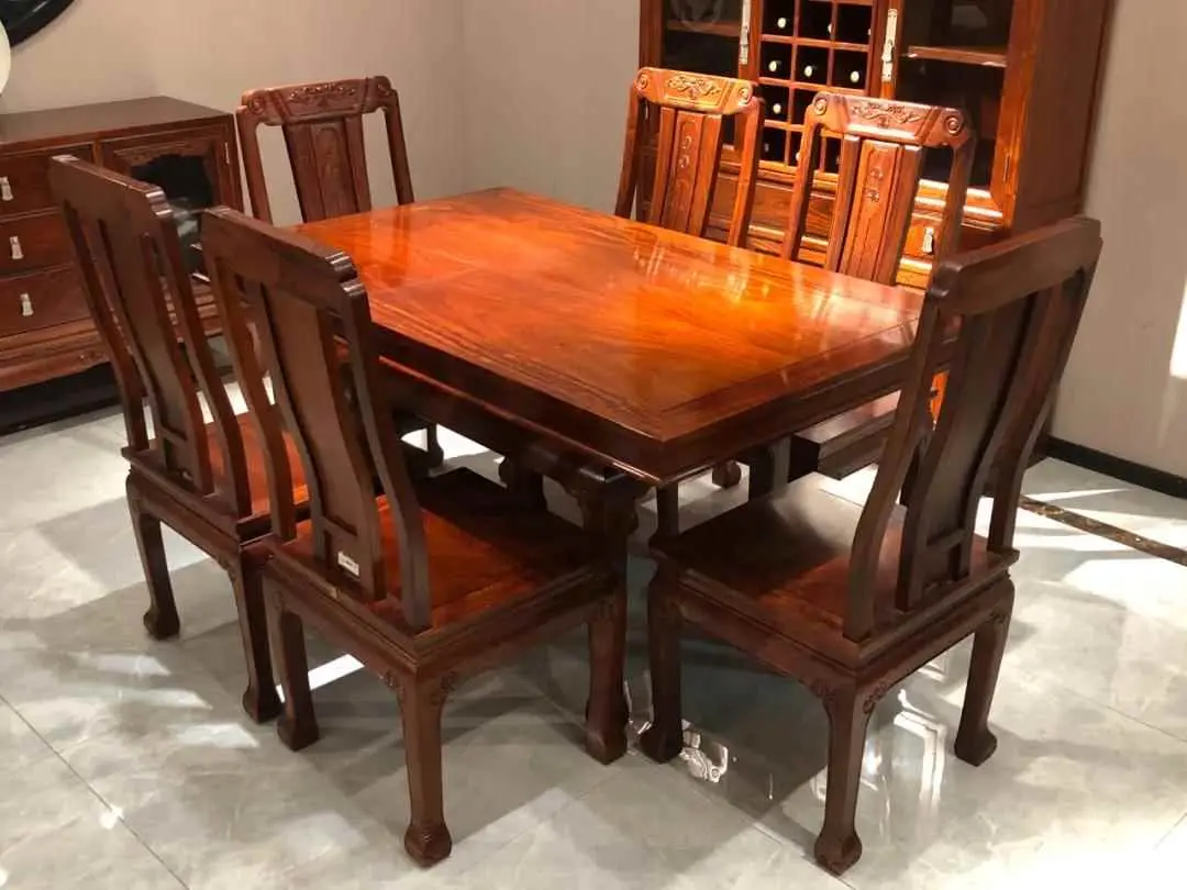 二是采用混合漆(封底工艺采用化学漆,表面漆饰使用生漆)的现代化揩漆工艺,目前市场上所售的许多红木家具都采用此生漆工艺处理家具表面,其特别适用于鸡翅木、花梨木所制作的红木家具,漆膜成型后光泽度高、耐腐蚀、坚韧耐磨。