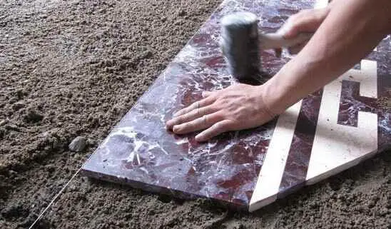 易碎的大理石铺装时,应先找一块同等尺寸的花岗石板材,放在水泥沙浆铺成的找平层上,敲击、找平。再将大理石板材背面涂刷上水泥浆,轻微敲击、固定。这样,就可以防止95%以上的大理石铺装造成的破碎、裂纹问题。一个小技巧,解决大问题.