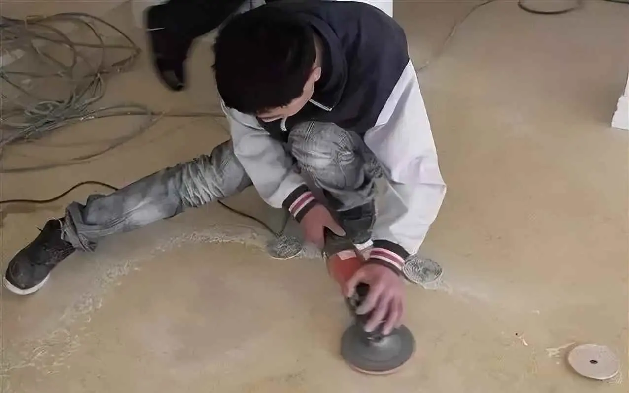 第二步:打磨剪口位;使用花岗岩翻新机配合专用剪口研磨片对剪口位进行精心打磨,使其与石材成为一个平面整体。
