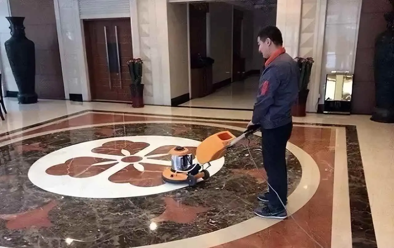 第三步:抛光;使用专用的花岗岩抛光机,从50-3000号的石材水磨片由粗到细对石材进行研磨,致使地面光亮平整如新。