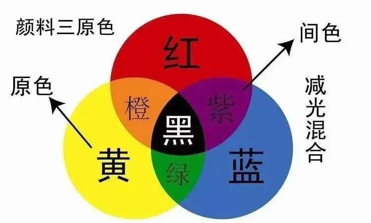黑色红+黄+蓝=黑色