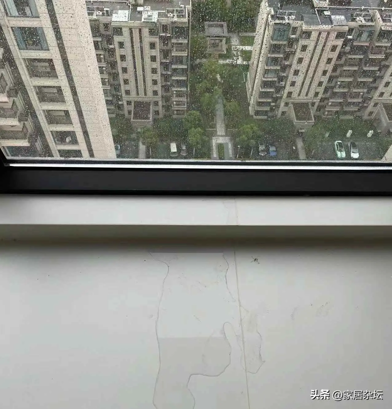 ②、窗台外侧积水。特别是外侧的窗台坡度不对,每次下雨以后就堆积雨水,这些水不能及时排走,慢慢的就顺着窗台渗透到我们家里的窗台。