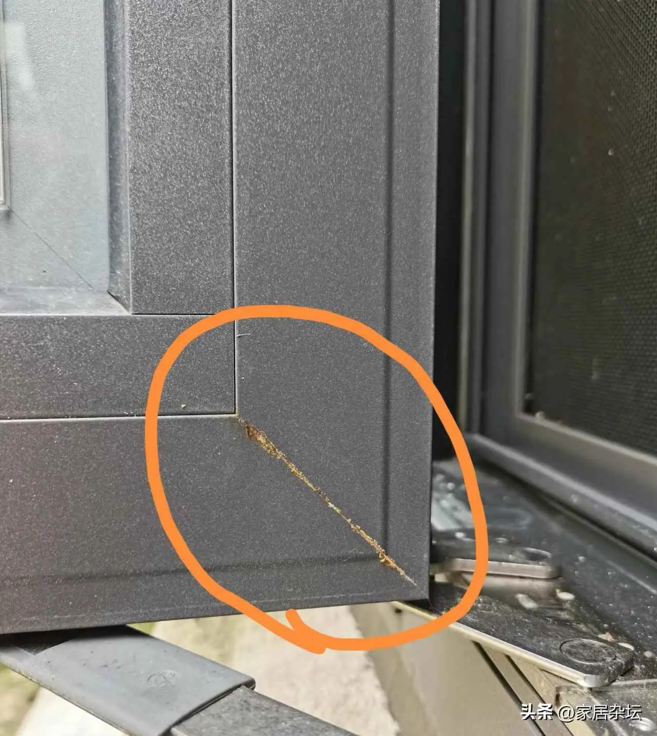 ②、型材的漏水。如果我们发现窗户顺着型材的缝隙向里面滴水,这时可以要求检查型材外部,看是否有开缝的,如果有开缝的要,要补焊进行维修。