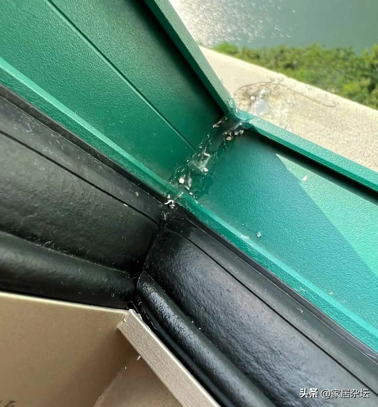 ①、型材的漏水。我们所看到的情况,就是下雨以后顺着型材的缝隙向家里滴水。就这种情况出现的几率很少,但是也是存在的。这里可能是玻璃胶开胶或者型材开裂所导致的。