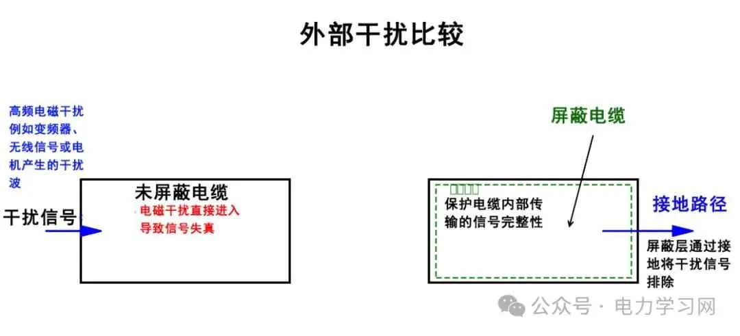 屏蔽原理:屏蔽层像一道“隔音墙”,把电缆里的信号锁住,减少对外界的干扰。