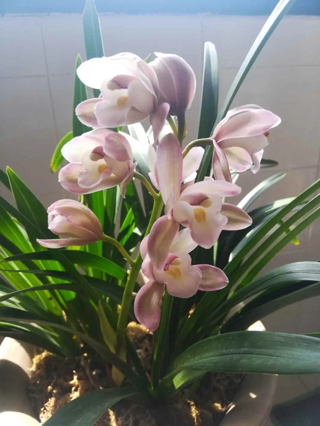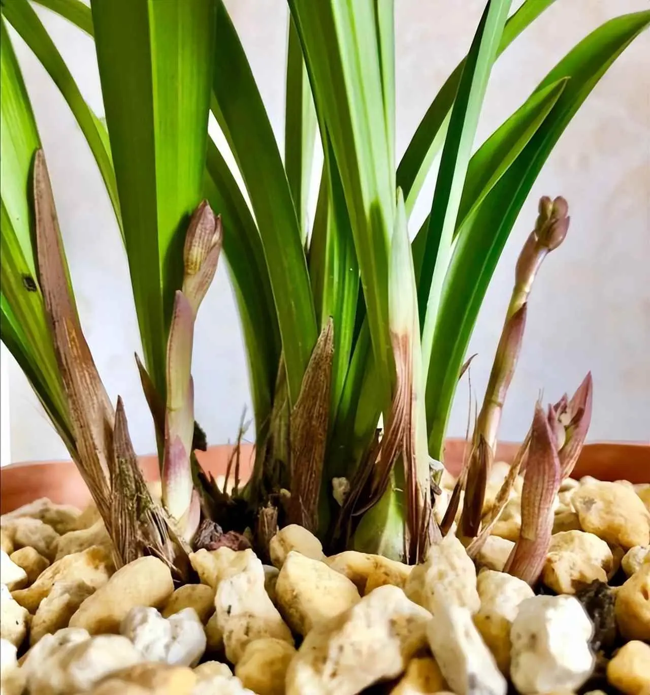 “冰根碧叶杂荒芜,晓露近晖缀宝珠”,就是在指代兰花的大白根,和其他植物不一样,兰花的根系一般都是水晶萝卜状,比较粗也比较大,一旦这些根系腐烂,对兰花会造成致命伤害,因此一定要保证土壤透气,才能避免根系腐烂;