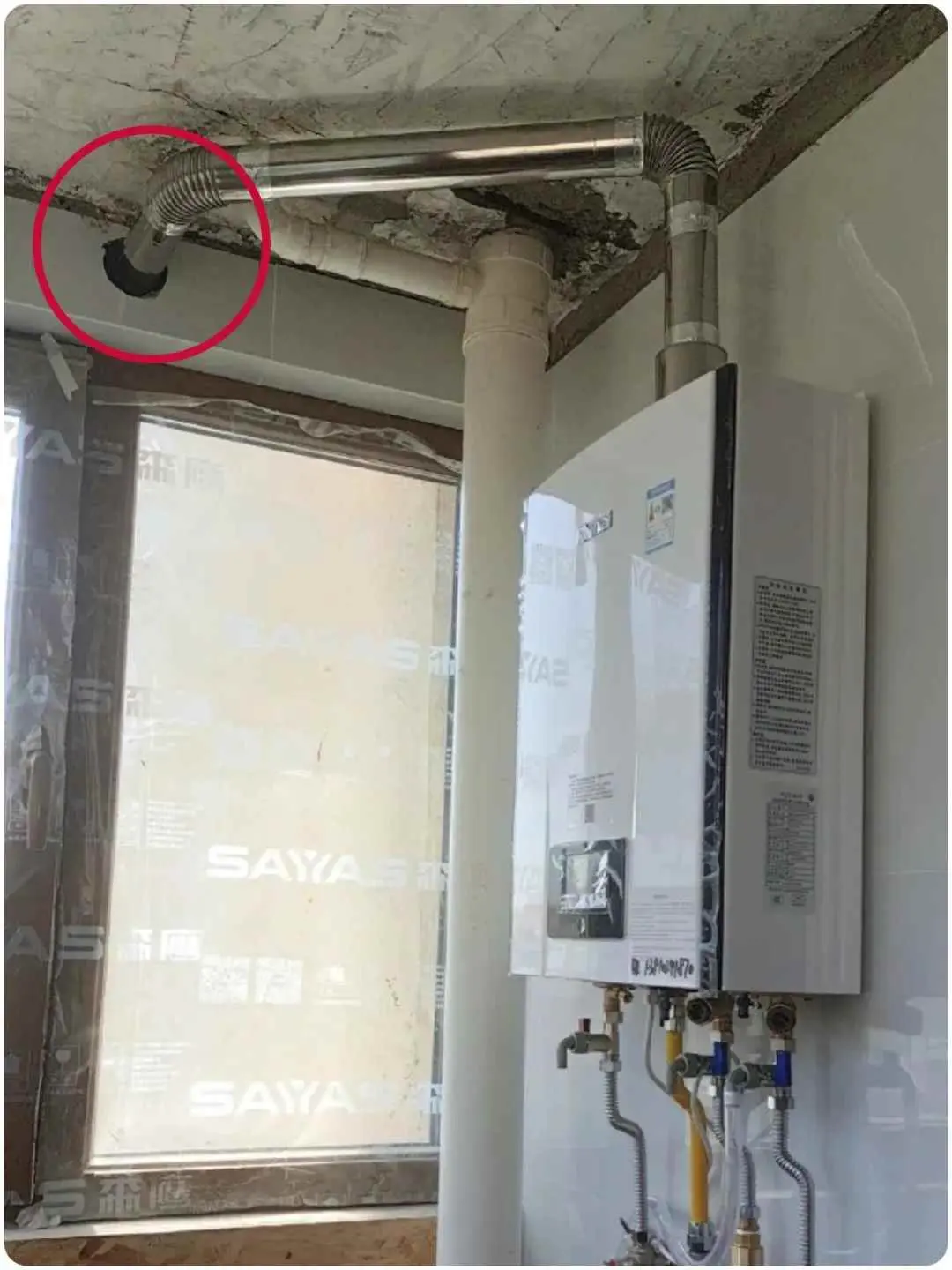 ▲燃气热水器孔洞常规尺寸为75mm,孔位应在吊顶之上以实现隐藏,而非低于吊顶的位置,否则管路将会暴露得更多。