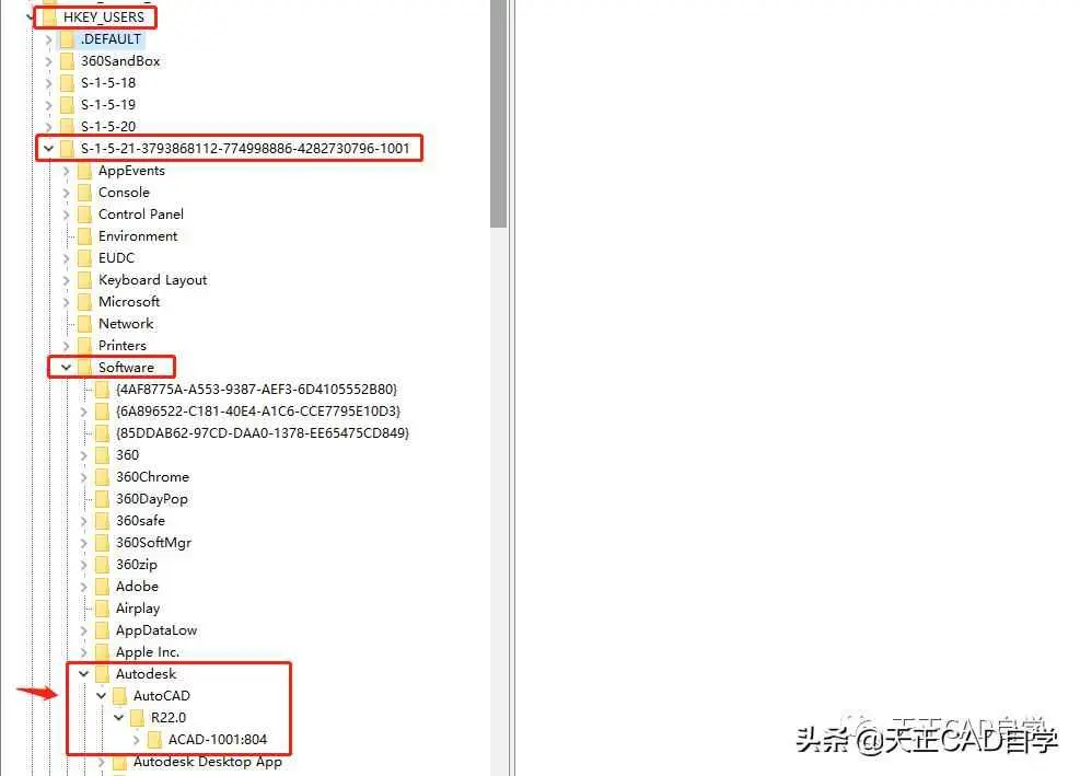 /Software/Autodesk/AutoCAD/R22.0/ACAD-F001:804/】,然后点击【InfoCenter】,找到【InfoCenterOn】,将数值修改为【0】,保存。