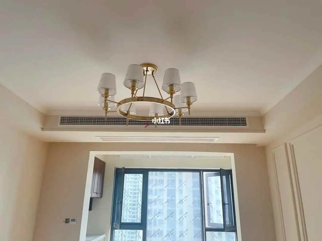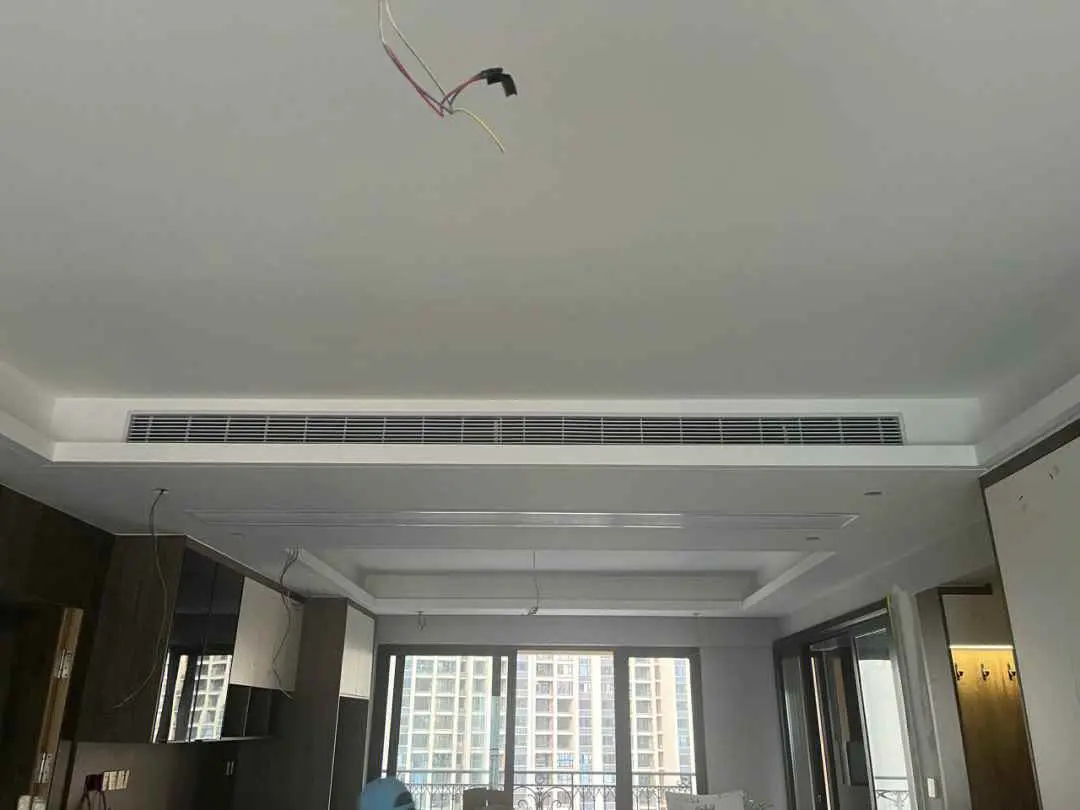 你的风管机如果想定制超长出风口,一定要在吊顶之前和木工师傅沟通好,这样在吊顶安装时师傅才能按照尺寸去安装。有些小伙伴发现超长出风口好看也想做,可是吊顶已经做好了无法更改,只能无奈让出风口与回风口保持一致。