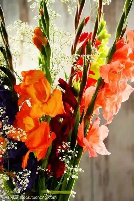 唐菖蒲是鲜插花,直插斜插,长插短插,都风韵不凡,从容地由自然美升华到艺术美,因此被誉为插花领域里的万能泰斗。