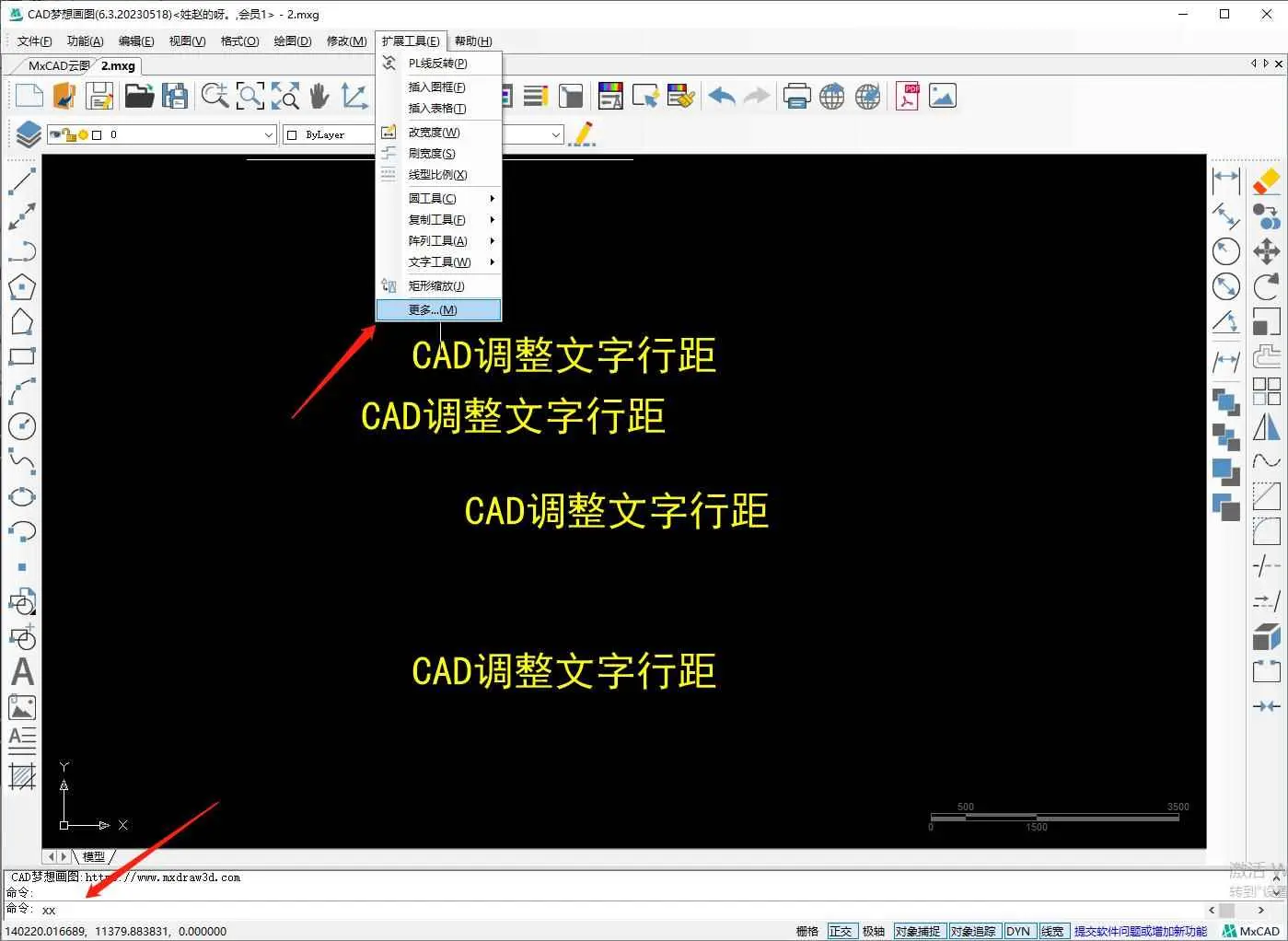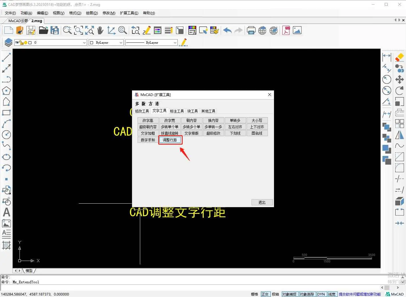 2.在打开的“扩展工具”里面找到“文字工具”下的“调整行距”功能