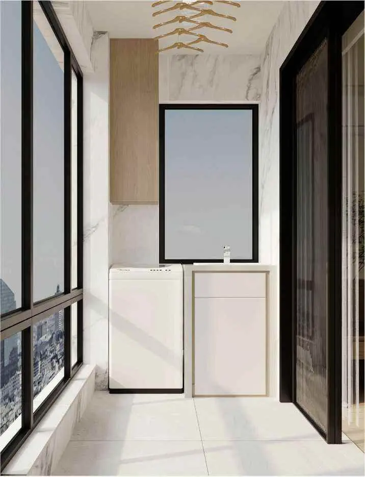 如果阳台(不封包类型)的主要作用是为了洗衣晾晒,其实可以不用安装吊顶,毕竟是奔着实用功能而去的,而且风吹日晒也很容易老化失去光泽;