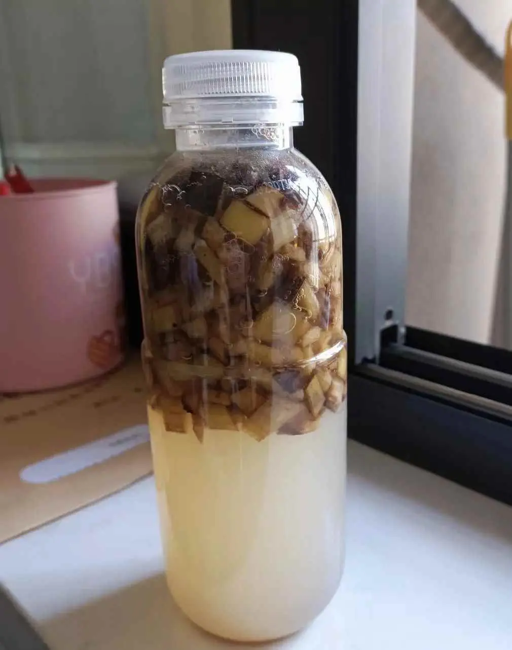当然,如果家里有淘米水的话,用淘米果在会更好,两者一起发酵,肥力会发挥到极致。把淘米水出和香蕉皮装到一个容器中,可以用矿泉水瓶来代替,放置在阳光充足的地方,每天搅拌搅拌,大概一个月就可以发酵好。