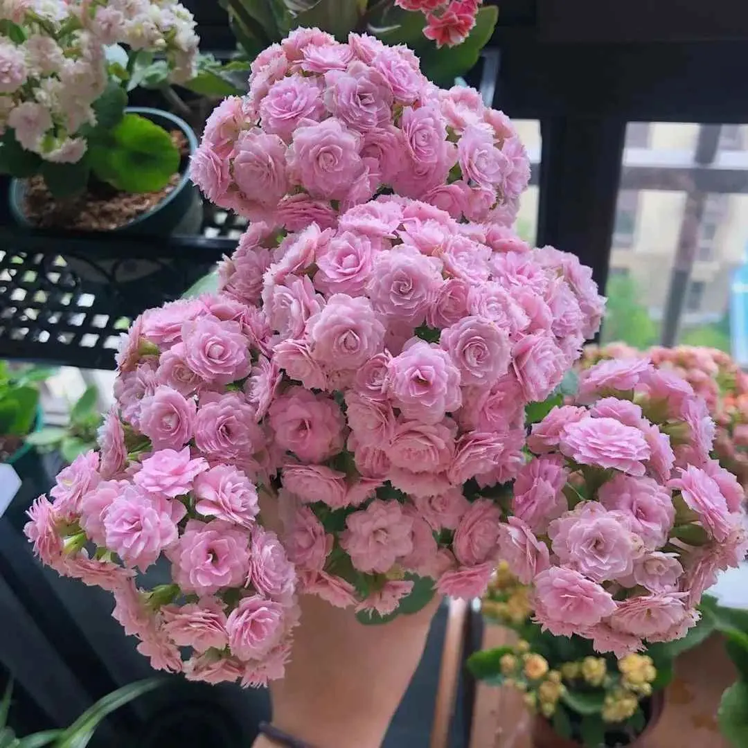 长寿花是多年生常绿草本植物,叶肥厚,翠绿有光泽,叶片边缘略带红色,花色有粉红色,橙色,白色,红色,粉色等等。花型饱满,矮小不占空间,花期漫长,观赏性持久,是当下最流行的一种观赏花卉。可以将它布置在桌面上,台面上,或者放在花架上,使得环境变得非常的清新漂亮。
