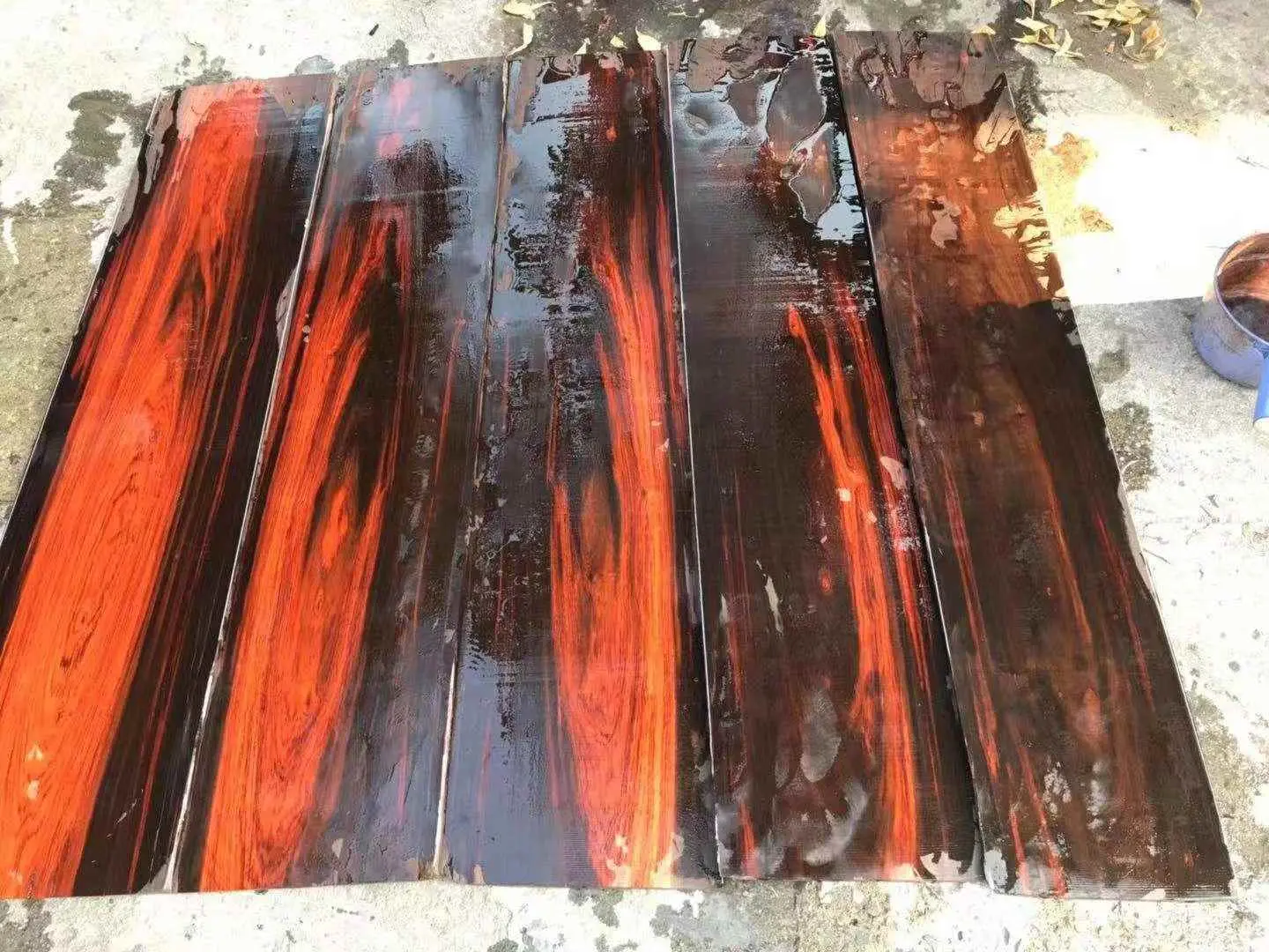 大红酸枝的纹理和颜色变幻莫测,同一块木料的颜色经常会有渐变色,几个颜色相互交错,非常美观。酸枝的鬃孔很小,纹理清晰细腻,一般都是顺直的,立体感强,与其他木材有很大差别。(新料因为产地不同,颜色差异很大,绿红黄黑参杂不一,老料一般颜色偏黑)