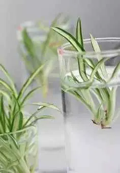 选取吊兰茎秆上生出根须的小枝,沿着根须处齐齐剪下。杯子里准备半杯水,将吊兰放入杯子,不过千万不要沉入杯底。