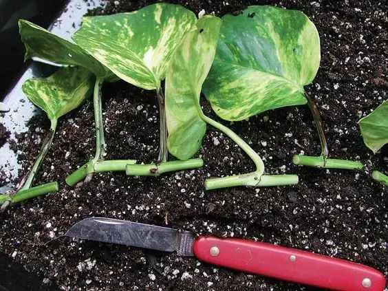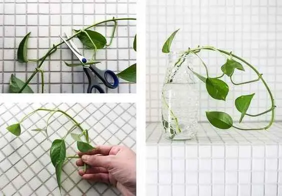 选取新鲜的绿萝茎秆,剪成几截,每一截以5-8厘米为宜,插在盆土中,慢慢地根部会长出嫩芽,等根系成长完整后移植到大花盆里。