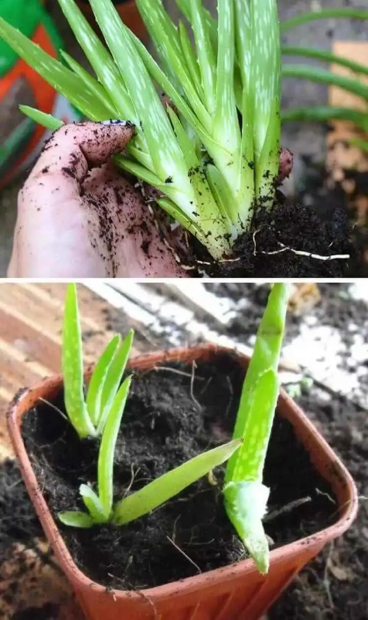 把将死的芦荟整盆倒出,选择生出嫩芽的部分剪下来,直接插在土壤里,开始时保持盆土湿润即可,不要多浇水,要不了多久,嫩芽就会长大。