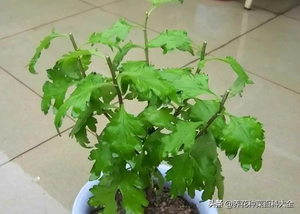 当菊花长出新的枝条,并且分枝也长出5-6片叶时,就可以进行第二次摘心了,这样分枝再促生分枝,很快单枝的菊花植株就会变成多枝植株,枝条多了,开花的时候自然也就多了。