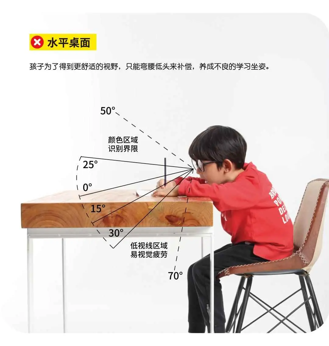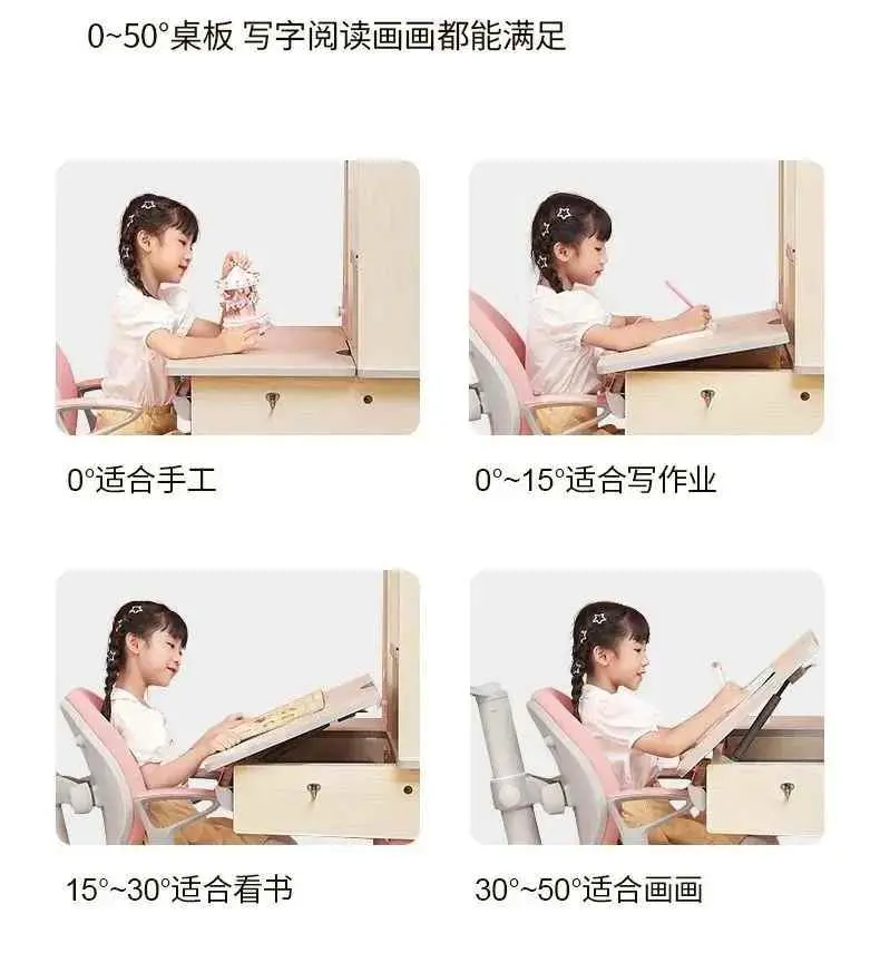 学习桌面角度调节,一般遵循:0°适合做手工、0-15°适合书法写字、15-30°适合阅读看书、30-50°适合绘画。