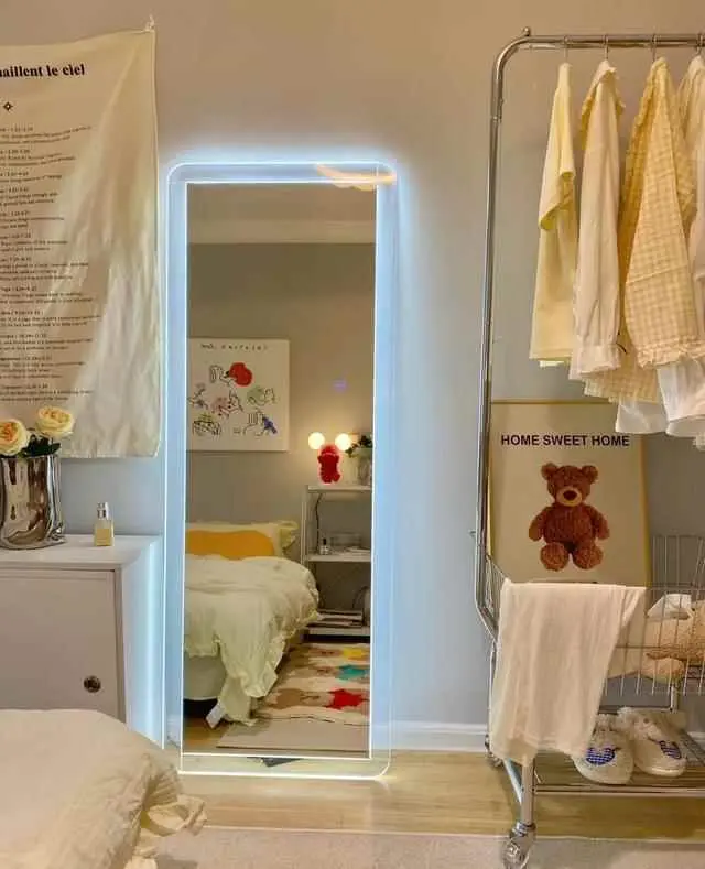 床边放镜子,晚上起床时容易被吓到,不利于心理健康。