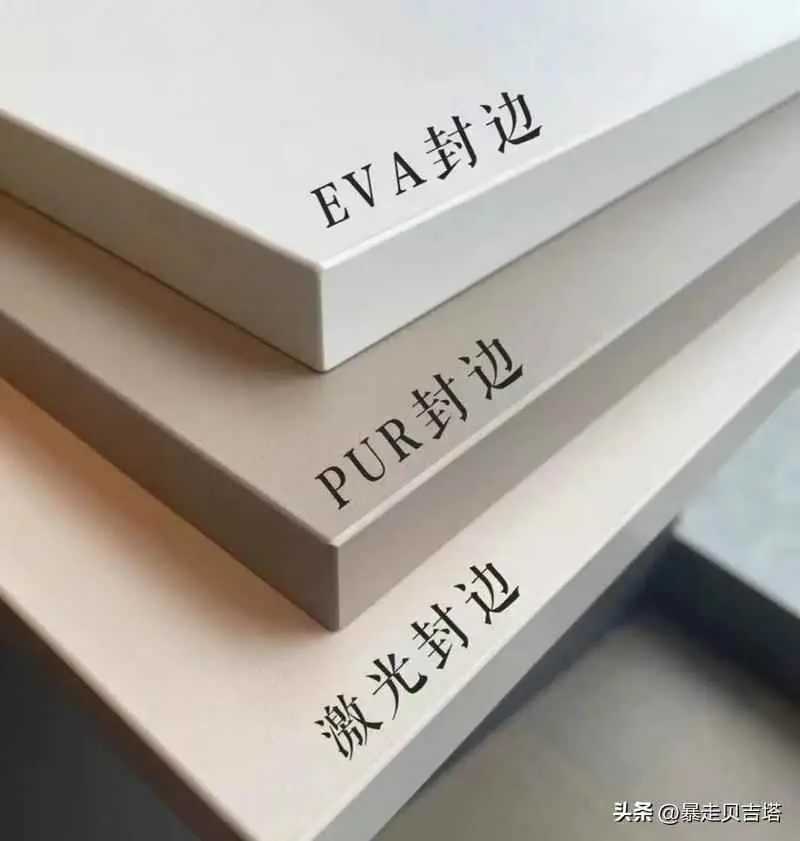 常见的板材封边有EVA封边、PUR封边和激光封边,板材封边会直接关系到板材的甲醛释放和板材的密封性,因此这是非常重要的一个细节点。