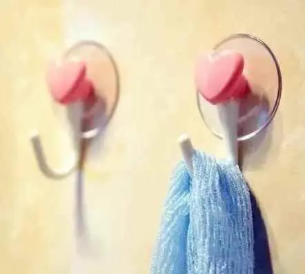 注意:在粘吸盘挂钩之前,先将墙面用干布擦干净!贴上后用力按吸盘把空气挤出来。