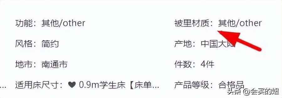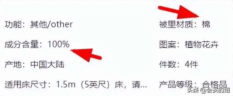 建议:选购床品时重点要看详情参数,注意看其是否标注了面料的材质和成分,并以详情页面标注为依据,而不要被这些标题里的花哨字眼所迷惑。