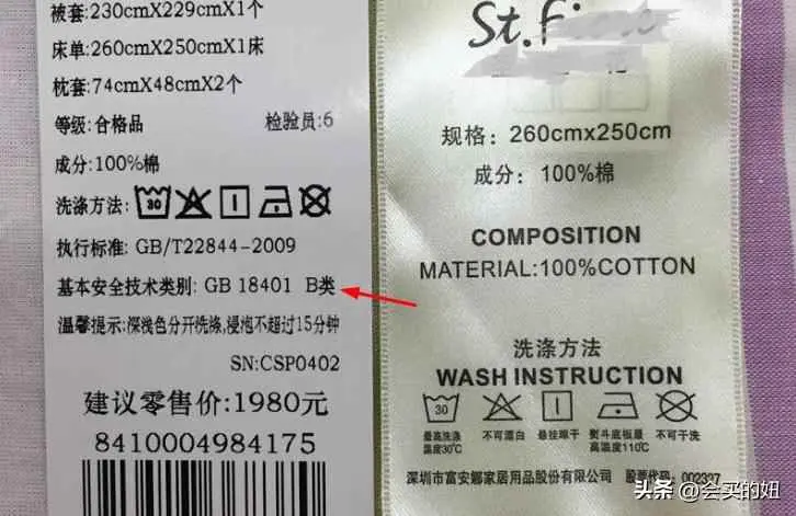如果标签上写着“A类”安全等级,那么表明这款床品就是天然纯棉的材质,就可以放心购买。