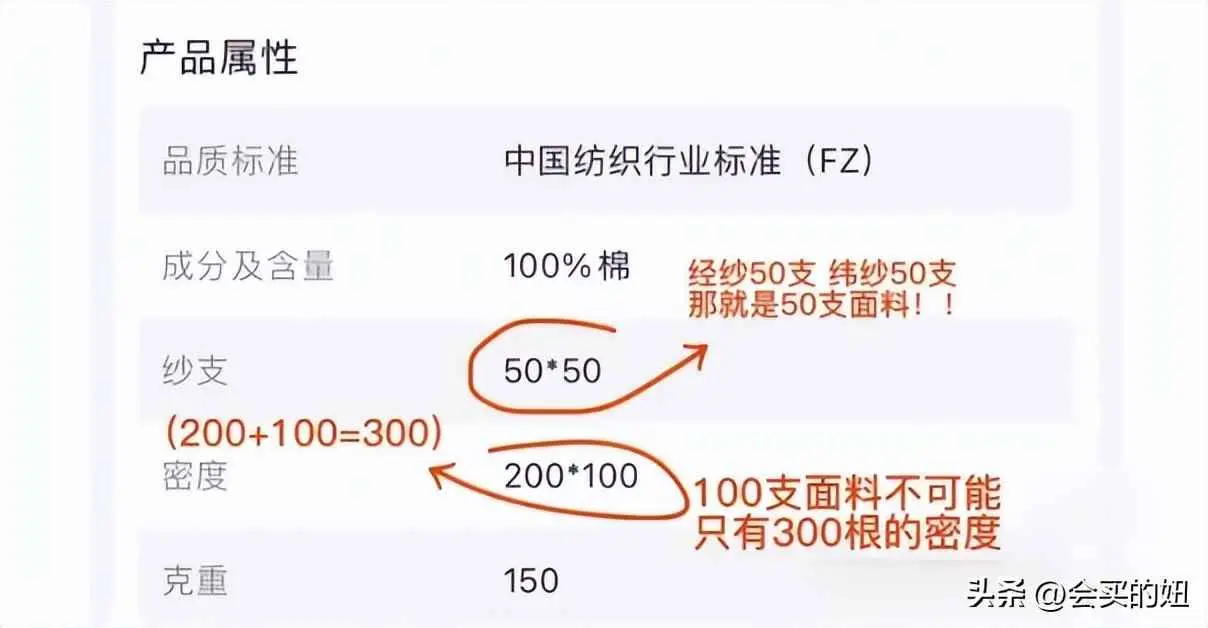 另外,购买时要看清楚商品详情页里的参数,标明的单位是否为“s”,因为有无良商家会用公支数“n”代替英支数“s”,公支数100只相当于英支数60,一个大坑就摆这里了。