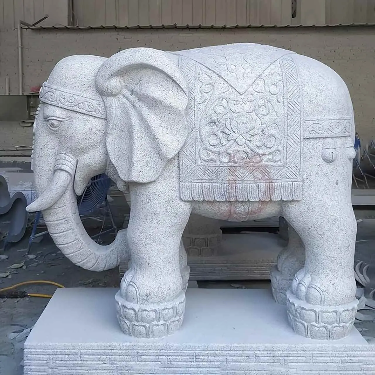 石雕大象是一件具有吉祥寓意石雕艺术品,在生活中经常可以见到,特别是在各种住宅、办公、生产、旅游性质的建筑楼入口处。石雕大象摆件相较于其他动物摆件,在外观形态上来说,石雕大象虽然体型庞大,但是却性情温婉,而且面部表情温和,给人很容易亲近的感觉,不像张牙舞爪的石雕狮子那么让人有距离感。