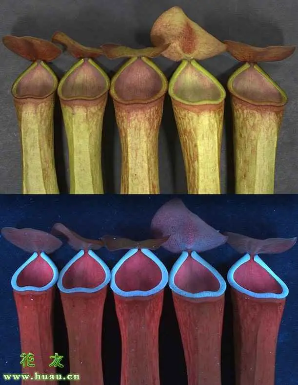 一些猪笼草的上位瓶瓶口会反射紫外线,成为吸引飞行昆虫的标志。