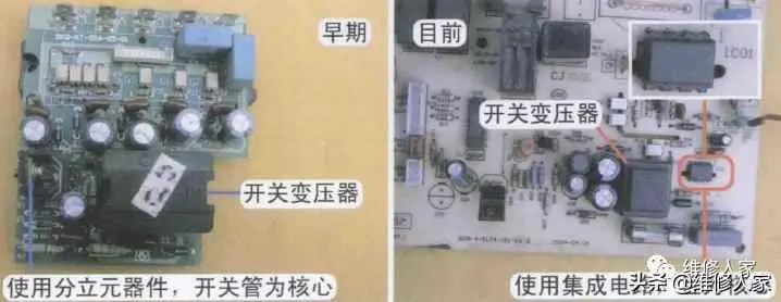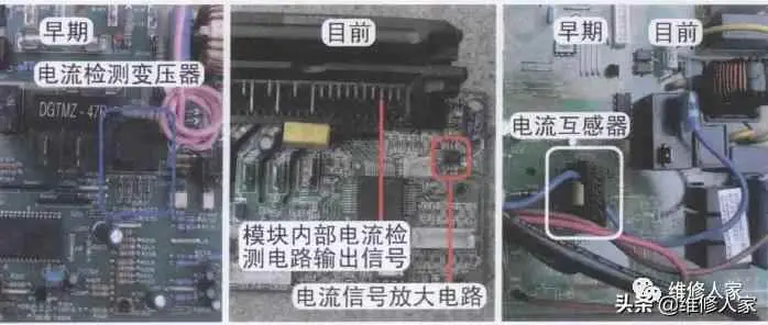 说明:早期和目前空调器的主板还有另外一种常见形式,就是使用电流互感器°