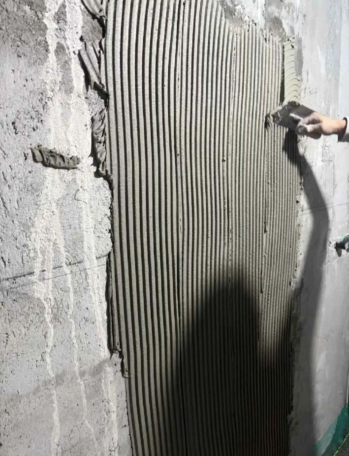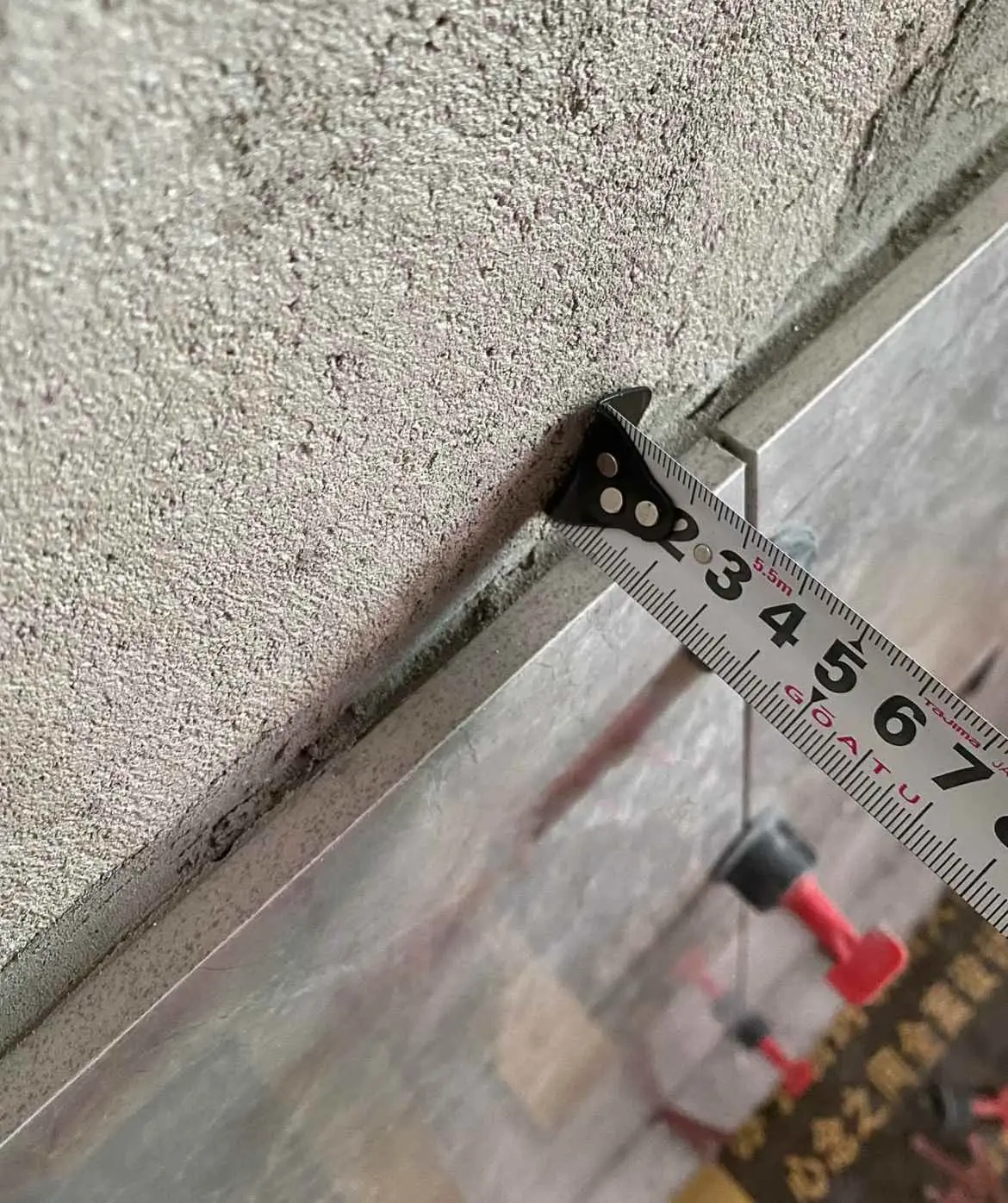 不怕一万,就怕遇到一些粗心或以以往经验施工的师傅,因为薄贴对于墙面基层要求极高,墙面误差不能超过3mm,稍有差池,到了瓷砖胶环节就会出现问题。