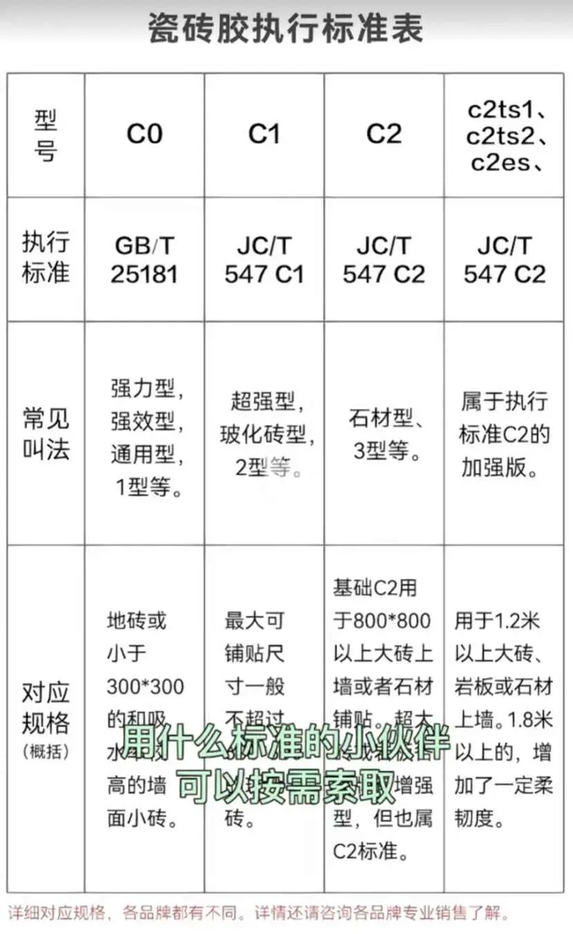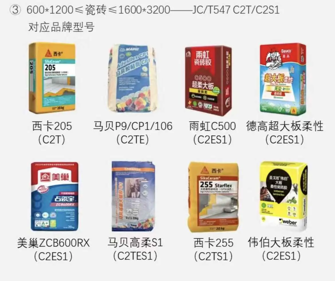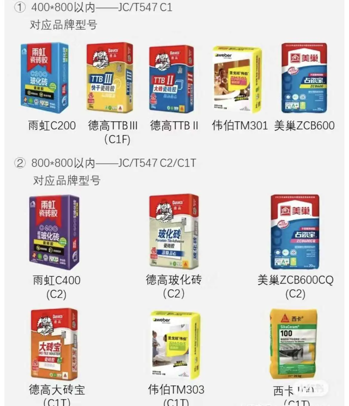 品牌瓷砖胶,对于型号都有标注,列举部分常见的品牌,供大家参考: