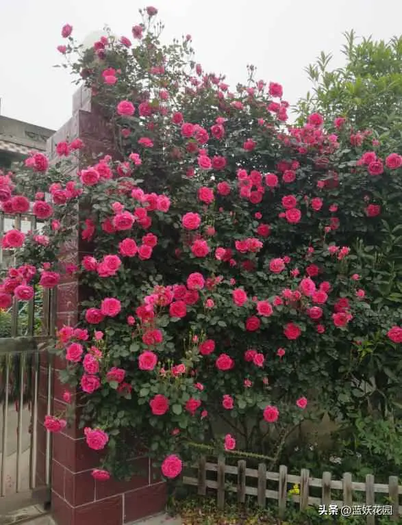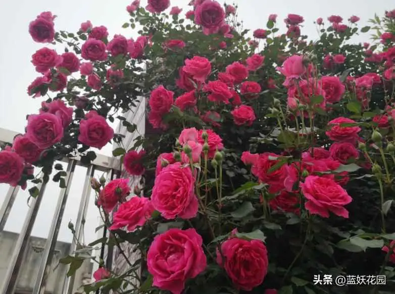 现在,月季即将进入盛花期,这是如果我们发现灌木月季枝条相对偏软,花苞又比较多,那建议你提前用支架做支撑。可以用爬藤架,也可以用包塑铁丝DIY支架支撑,在月季花苞显色前就做好支撑,月季开花时就会比较整齐。如果等开花后再做支撑,短时间内花朵会七扭八歪的影响观赏,不过两天后,株型就会恢复到完美状态。