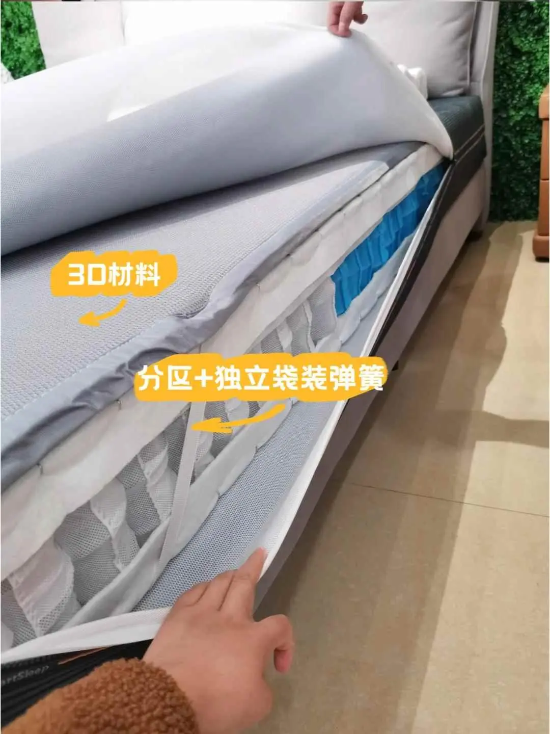 除了短暂的试躺体验之外,一定要问清楚床垫销售员床垫的弹簧构造问题:是独立袋装弹簧还是还是整网弹簧?弹簧的线径、回径、尺寸又是多少?