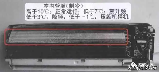 ① 设置目的:制冷时室内风机为低风而压缩机高频运行,蒸发器表面温度不能及时散出,使得吸气管温度变低,容易使压缩机液击损坏,或者运行时蒸发器出现流水声;制热时蒸发器温度太高,容易使压缩机过载损坏。