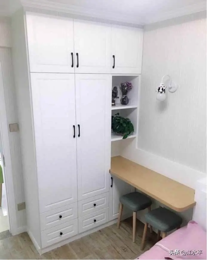 收纳柜的柜门可以做也可以不做,但考虑到家务量,那么做八成的柜门,剩下的两成可以不做柜门。不做柜门的收纳柜就不能用来收纳杂物了,可以当做展示柜来使用,柜门也有多种选择。比如把电视墙做成收纳柜,而家里也不用电视,那么柜门可以选择无把手的,这样既美观还能当头投影仪的幕布使用。