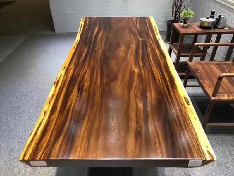 奥坎大板是实木大板中最便宜的,性价比也最高,奥坎大板的优点在于其口径大,纹理令人感觉舒适,且奥坎大板木质本身的颜色有很多种可以选择(暗栗色、橙色、黄色、偏绿、偏红),最重要的就是其价格相当便宜,2米左右规格的尺寸,价格在2-3千左右。缺点就是其材质不稳定,含水率高,比较容易开裂。但是因为其价格的缘故,在销量上还是首当其位。大家如果预算有限,可以考虑奥坎大板!